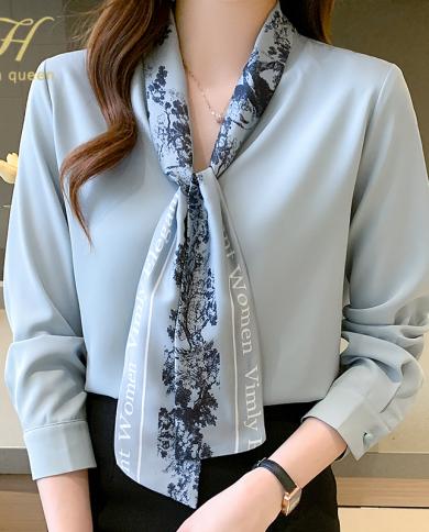 H Han Queen Spring New Bow Shirt Womens Blouse Vintage