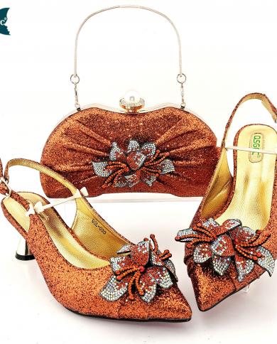 Women Party Shoes And Bag Set With Shinning Crystal