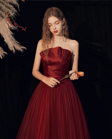 Tube Top Evening Dress Female Banquet Elegant Long Black Temperament
