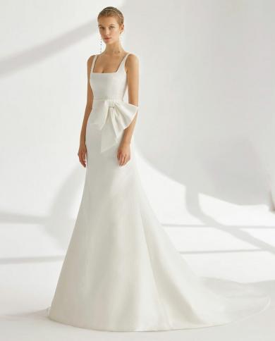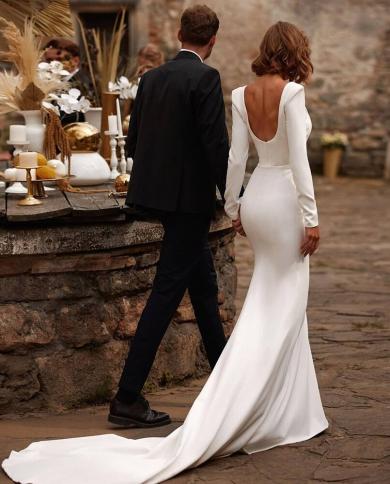 Elegant Satin Ladies Square Neck Wedding Dress Fishtail Long Sleeve