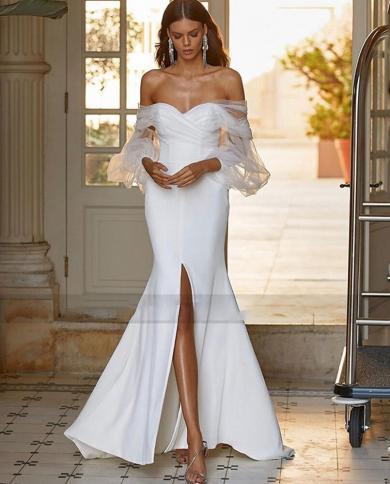 Elegant Ladies Fashion Mermaid Off Shoulder Satin Side Slit Bridal