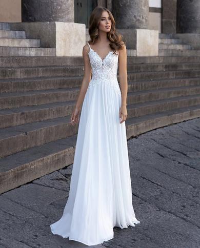 Spaghetti Straps A Line Chiffon Wedding Dress V Neck