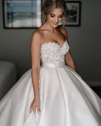 Ladies Sleeveless Princess Wedding Dress Satin Sweetheart Lace Bridal