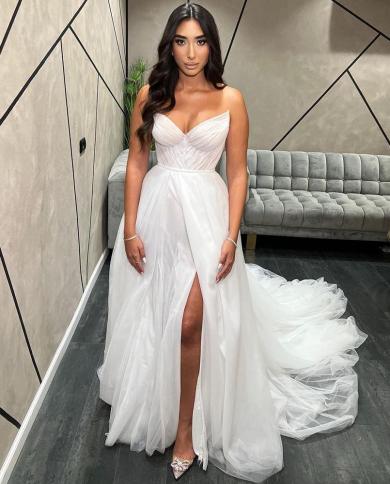 Luxury Illusion Modern High Side Split Wedding Dress Tube Top