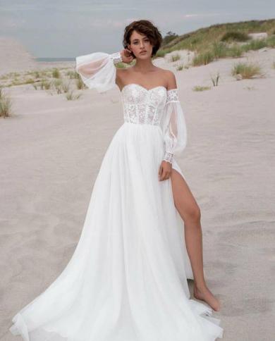 2023 Bohemian Wedding Dresses A Line Side Split Bridal Gowns