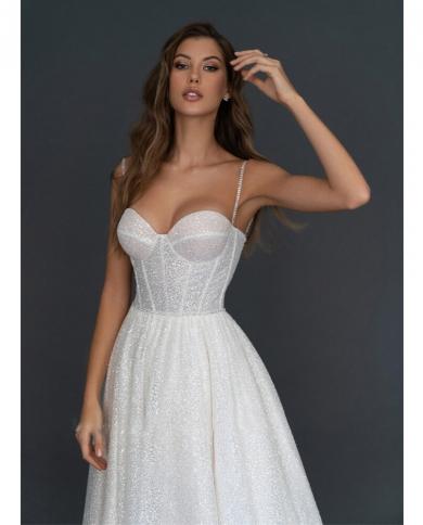 Boho Wedding Dresses Ladies Drop Shoulder Puff Sleeves Detachable Shiny