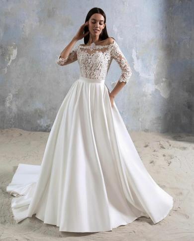 A Collection Lace Long Sleeve Bridal Wedding Party Satin Appliqués
