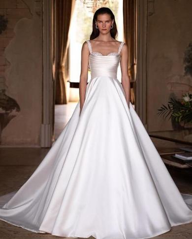 Sweetheart Satin Wedding Dress Pleated 2023 Spaghetti Straps Side