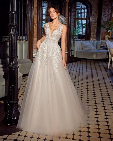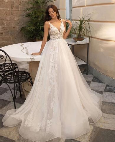 Elegant Tulle Wedding Dress Women V Neck Sweetheart A