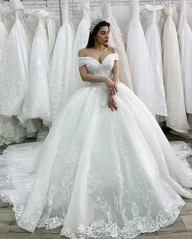 Luxury Wedding Dresses Lace Appliques Sweetheart Off The Shoulder A