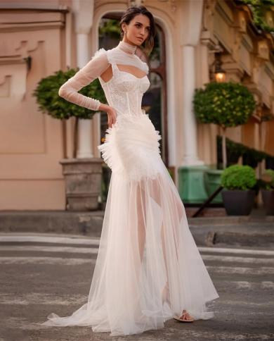 Luxury Elegant Long Sleeve Lace Mermaid Wedding Dress Tulle Coat