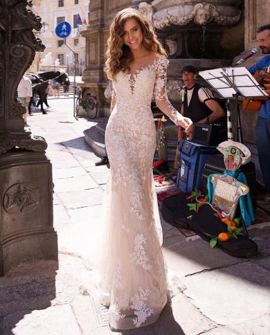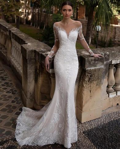 Mermaid Wedding Dresses V Neck Lace Long Sleeve Bridal