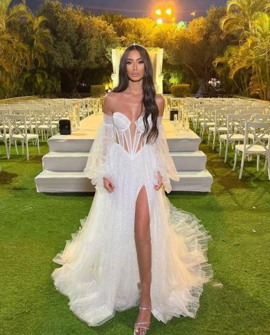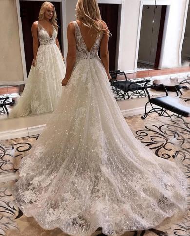 Luxurious Lace Sequined Wedding Dress Shiny Tulle Beach Party Boho
