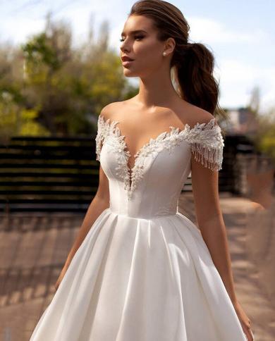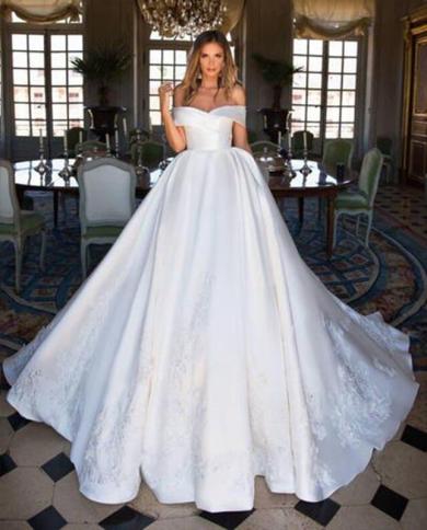 Off Shoulder Satin Wedding Dress A Line Dress Robe