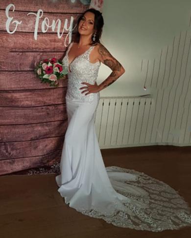 Luxury Ladies Cimien Wedding Dress V Neck Double Straps Appliqués