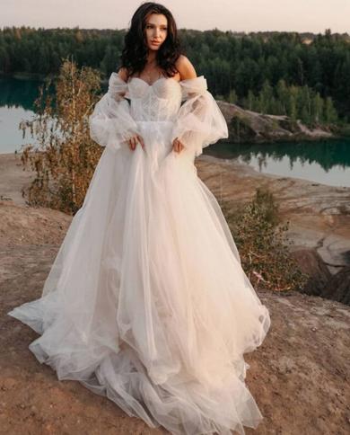 Boho Wedding Bridal Off Shoulder Elegant Luxury Ladies A Line