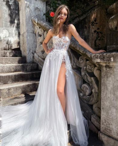 A Line Lace Appliqué Beach Wedding Dress Ladies Elegant Sweetheart