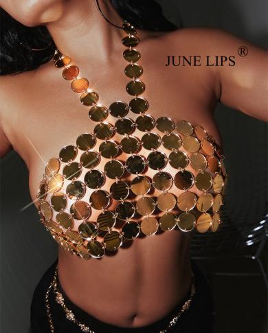 June Lips Womens Shiny Sequin Tank Top Sleeveless Slim Fitting