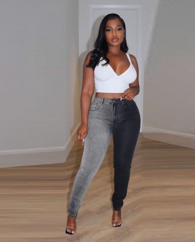 2022 New Fashion Woman Patchwork High Waist Jeans Street Denim