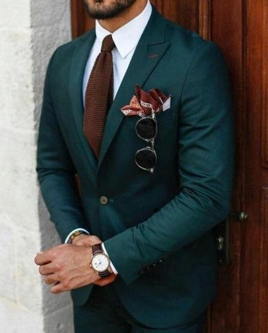 2022 City Casual Gentleman Dark Green Wedding Groom Men Suits