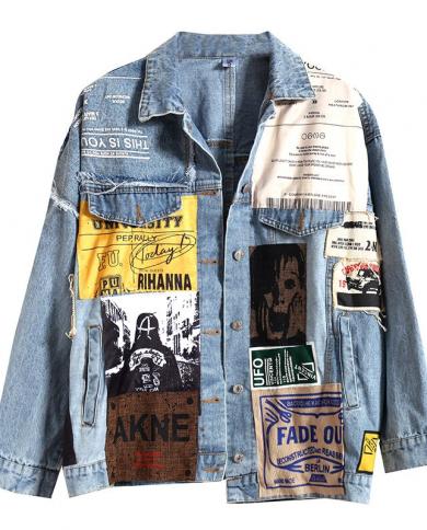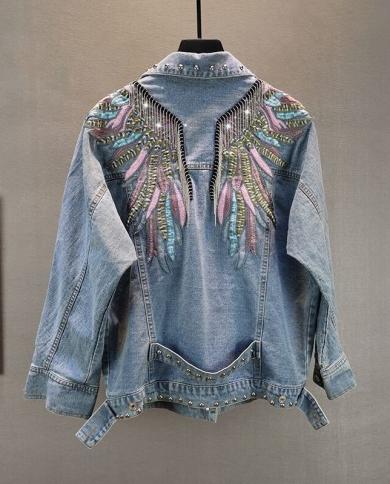 2022 New Autumn Womens Denim Jacket Vintage Overcoat Appliques Pattern