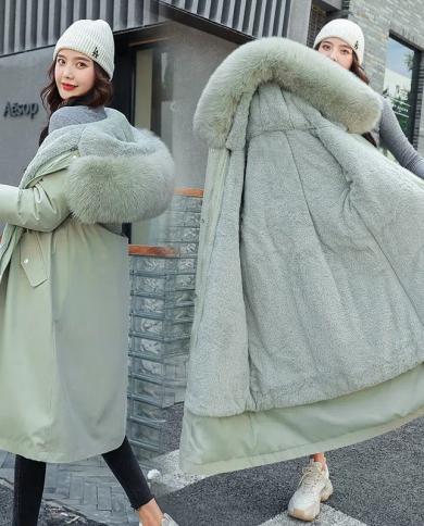 Womens Parkas 2022 New Winter Jacket Fur Lining Long Coat