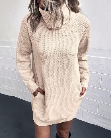 Elegant Sweater Dress Women Knit Autumn Winter Clothing Turtleneck Long