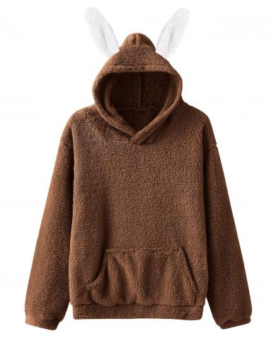 Kawaii Hoodies Lovely Rabbit Ear Hooded Sweatshirt Women Solid Winter