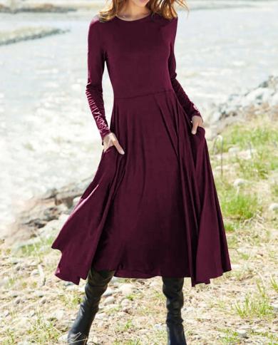 Vintage Solid Color Women Dress Elegant 2022 Autumn Winter Long