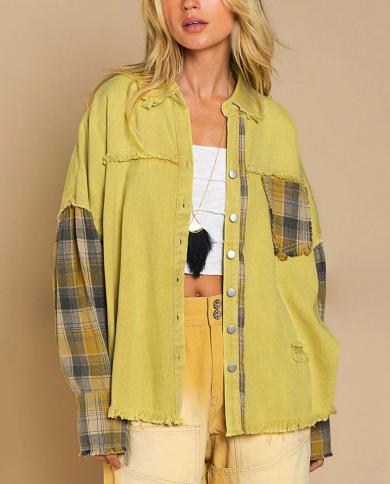 New Plaid Stitching Women Denim Jacket Spring Autumn Short Coat