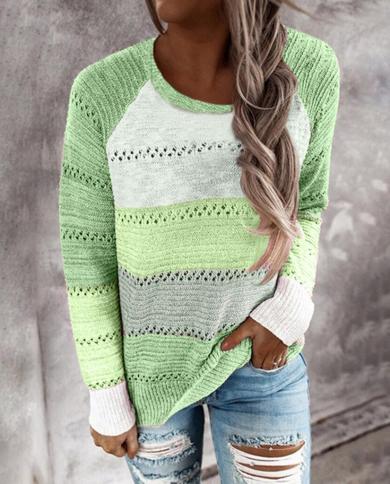 Women Sweater Fashion Striped Multicolor Knitwear Casual Round Neck Long