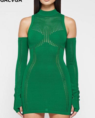 Gacvga Knitted Hollow Out Mini Dress For Women