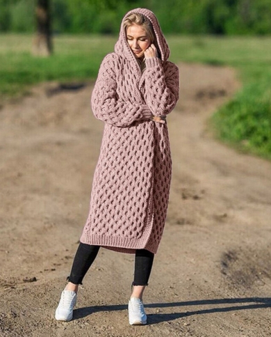 Ladies Autumn And Winter Warm Solid Color Long Knit Sweater