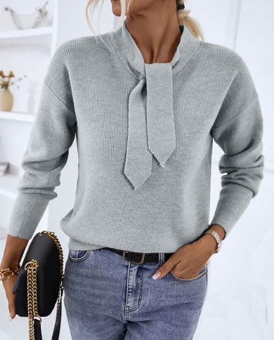 Temperament Ladies Autumn Winter Top Commute Sweater Pullovers Solid Color