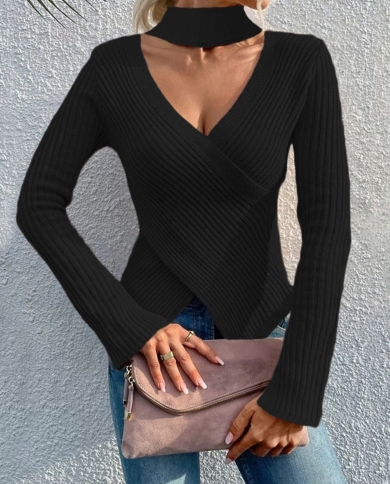 Ladies V Neck Long Sleeve Sweater Pullovers Slim Fit
