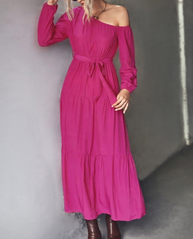 Ladies Fashion One Shoulder Waist Tie Long Sleeve Party