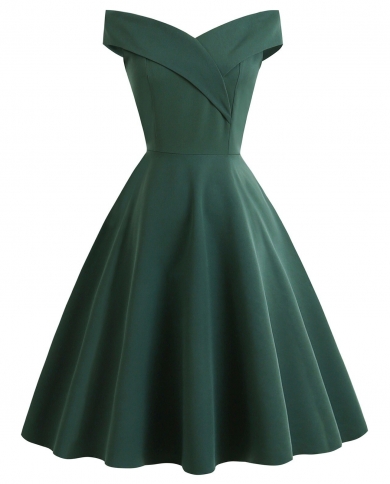 Vintage Wave Point Sleeveless One Neck Shoulder Vintage Cocktail Dress