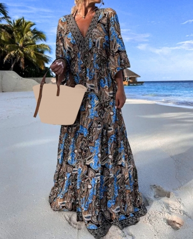 Ladies Temperament Fashion Floral Backless Bohemian Dress Loose Plus