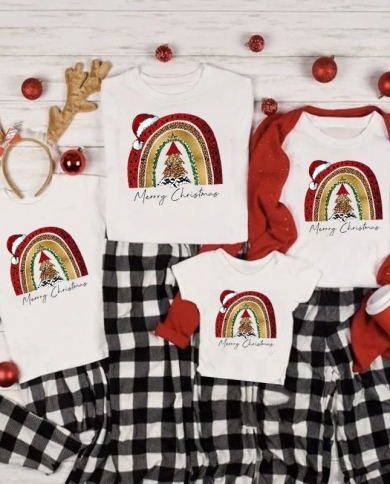 Tshirt Christmas Rainbow Happy Tree Family Matching Tshirt Short Sleeve