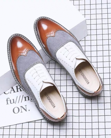 Mens Leather Shoes Summer Artificial Pu Color Matching Pointed Toe