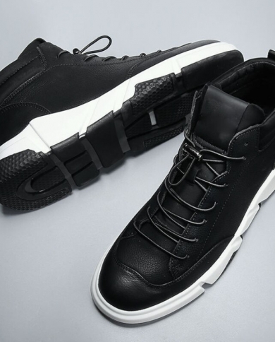 Men Platform Sneakers High Top Boots Genuine Leather Outdoor Male