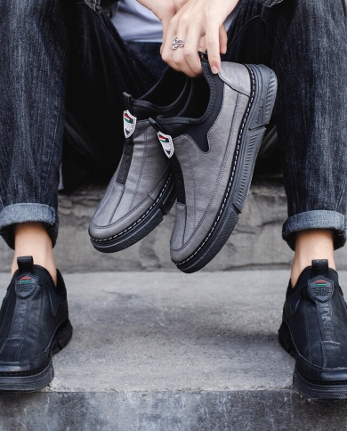 Men Casual Leather Sheos Comfortable Loafers Moccasins Platform Slip On