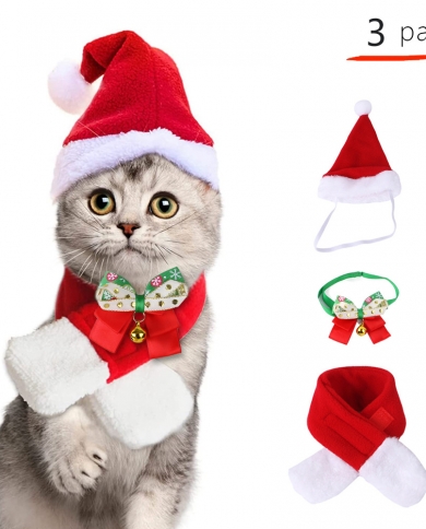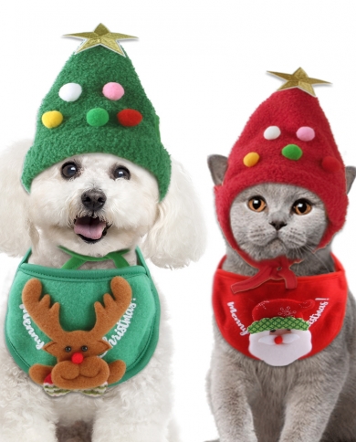 New Christmas Pet Scarf Hat Set Funny Cat Christmas Dog