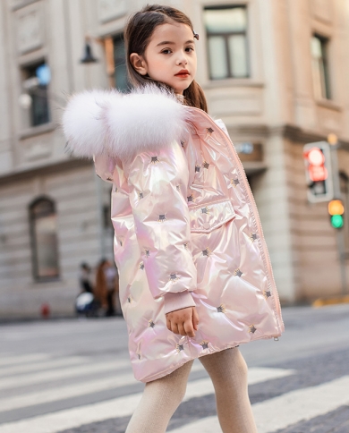 Girls Down Jacket New Winter Childrens Mid-length Thickened Shiny Coat