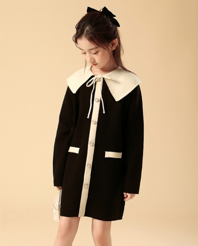 Girls Mid Length Lapel Knitted Dress
