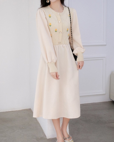 Long Sleeve Elegant Yellow Maxi Knit Dress Women Autumn Winter