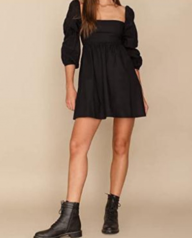 Womens Puff Sleeve Black Party Dress Long Sleeve Fashion
