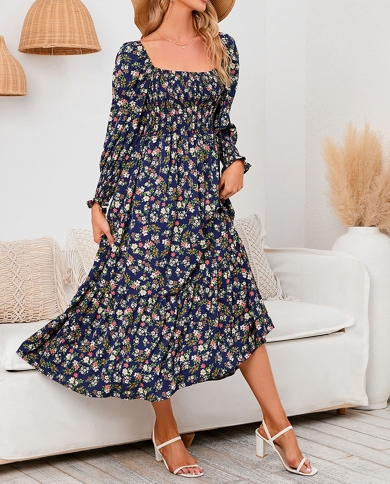 Ladies Autumn Winter Casual Small Floral Dress Vintage Chiffon