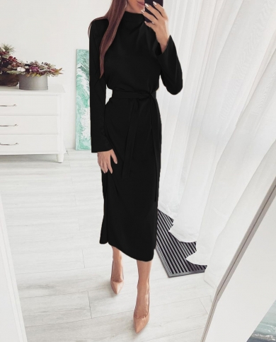 Winter Fashion Turtleneck Knitted Sweater Dress Elegant Slim Long Sleeve