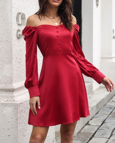 Autumn Off Shoulder Mini Dress Solid Color Long Sleeve